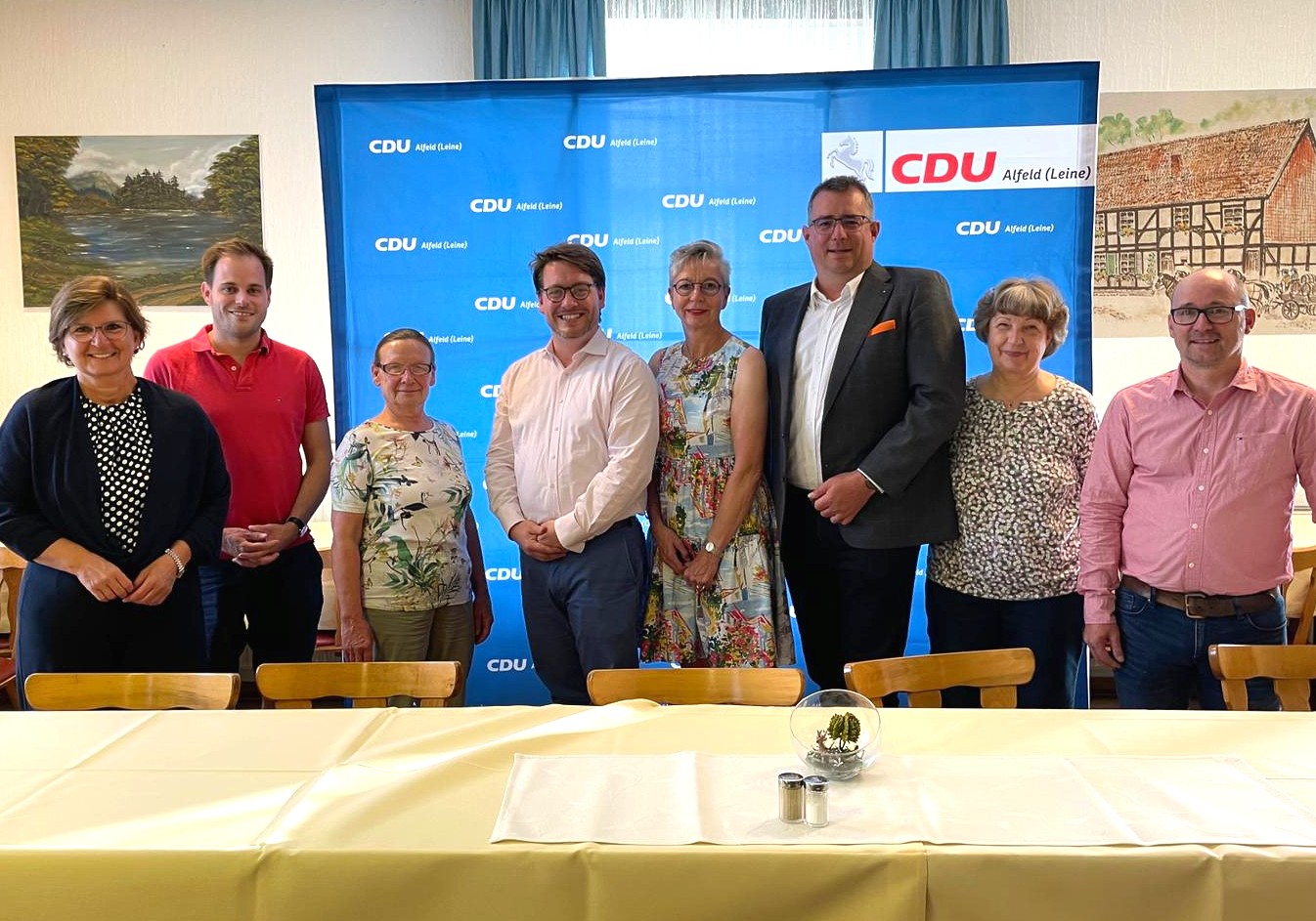 Während der Jahreshauptversammlung am 24.06.22 in Röllinghausen wurde der neue Vorstand des CDU-Stadtverbandes Alfeld gewählt. Der Vorstand setzt sich zusammen aus: Andreas Behrens (Vorsitzender), Heike Lietz (1. stellv. Vorsitzende), Sören von Nolting (2. stellv. Vorsitzender), Dirk Dräger (Schriftführer), Ute Bertram (Schatzmeisterin), Oliver Wöhler (Beisitzer), Constanze Klossek (Beisitzerin), Peggy Keyser (Beisitzerin), Karsten Wussow (Beisitzer), Christian Voit (Beisitzer) und Martina Franitza (Beisitzerin)